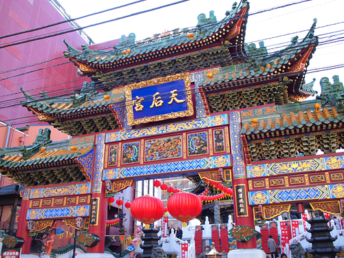 横浜媽祖廟というところのきらびやかな門。