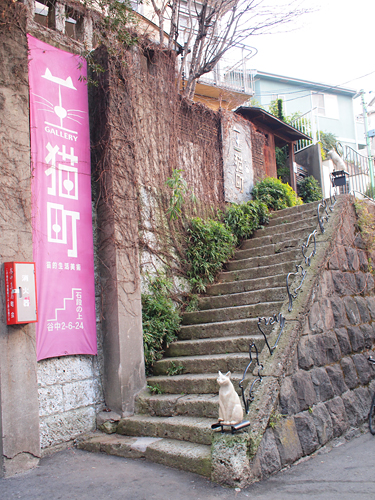 猫に関する作品のギャラリーで、この日は、絵と陶器が展示されてました。